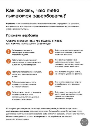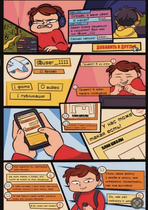 Представленные информационно-просветительские материалы являются комиксами, разработанными специалистами Национального центра информационного противодействия терроризму и экстремизму в образовательной среде и сети Интернет (НЦПТИ). Их цель — донести до подростковой и молодежной аудитории информацию о вероятных рисках в социальных сетях. Комиксы разработаны с учетом возрастных особенностей подростков, не содержат негативной и противоречивой информации. В действиях героев комиксов осуждается модель деструктивного поведения, а безопасное и законопослушное поведение определяется как единственно верное. Кроме того, материалы дополнены рекомендациями о том, как следует поступать и куда обращаться подростку в случае выявления подобных ситуаций.